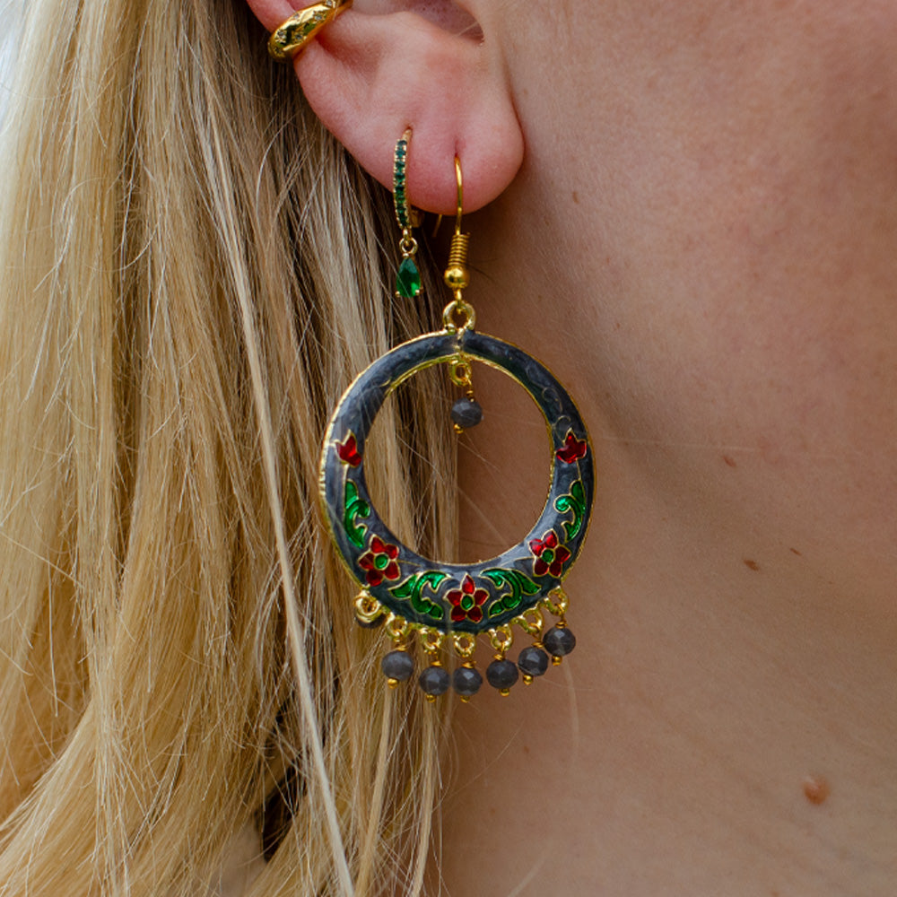 Add a pop of colour to any outfit with 'Celestial' full moon Rajasthani earrings. Fun and stylish, made from hand-painted, lightweight brass with colourful beads. Perfect for any occasion!