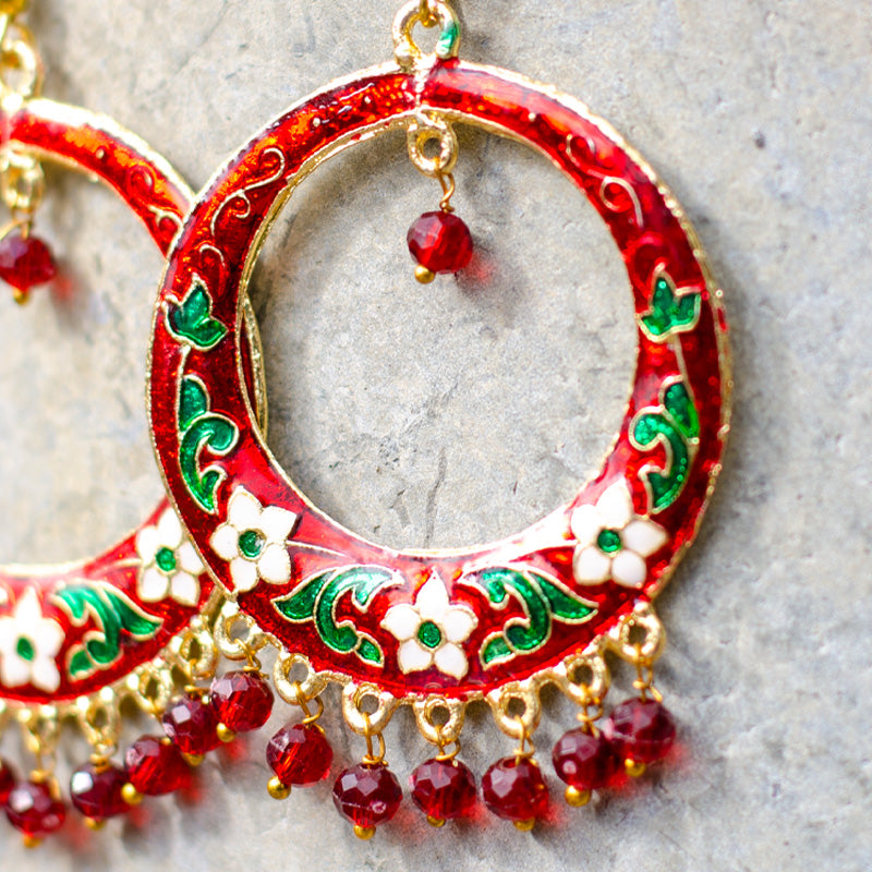 Add a pop of colour to any outfit with 'Poppy' full moon Rajasthani earrings. Fun and stylish, made from hand-painted, lightweight brass with colourful beads. Perfect for any occasion!