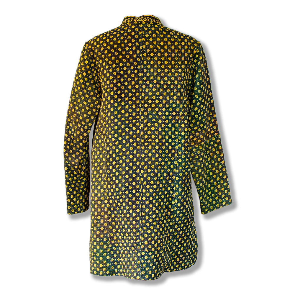 The 'Sharwani' Reversible cotton Kantha Jacket is a stylish, elegant and neat shape with a Nehru collar, slit front pockets and silk buttons.