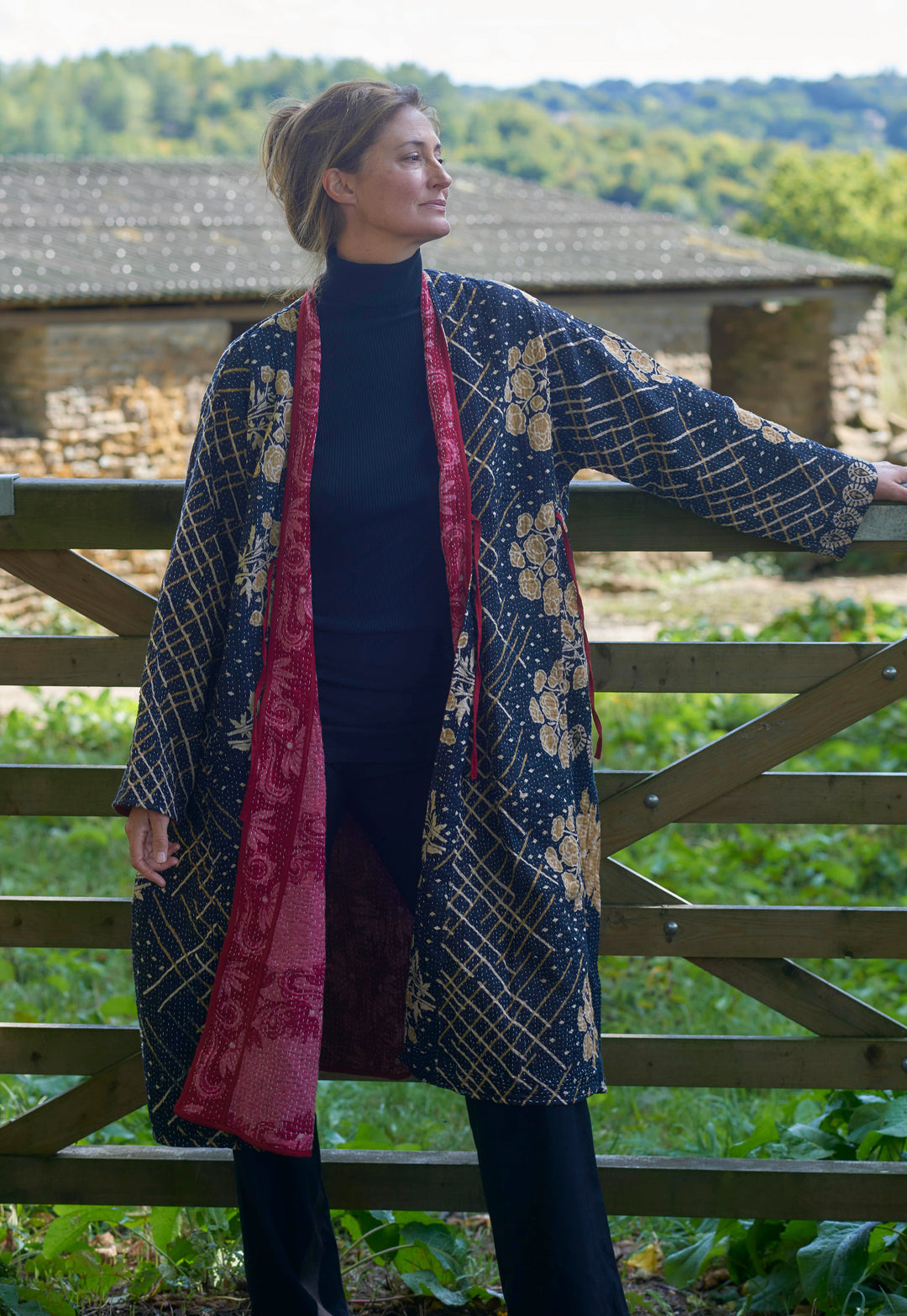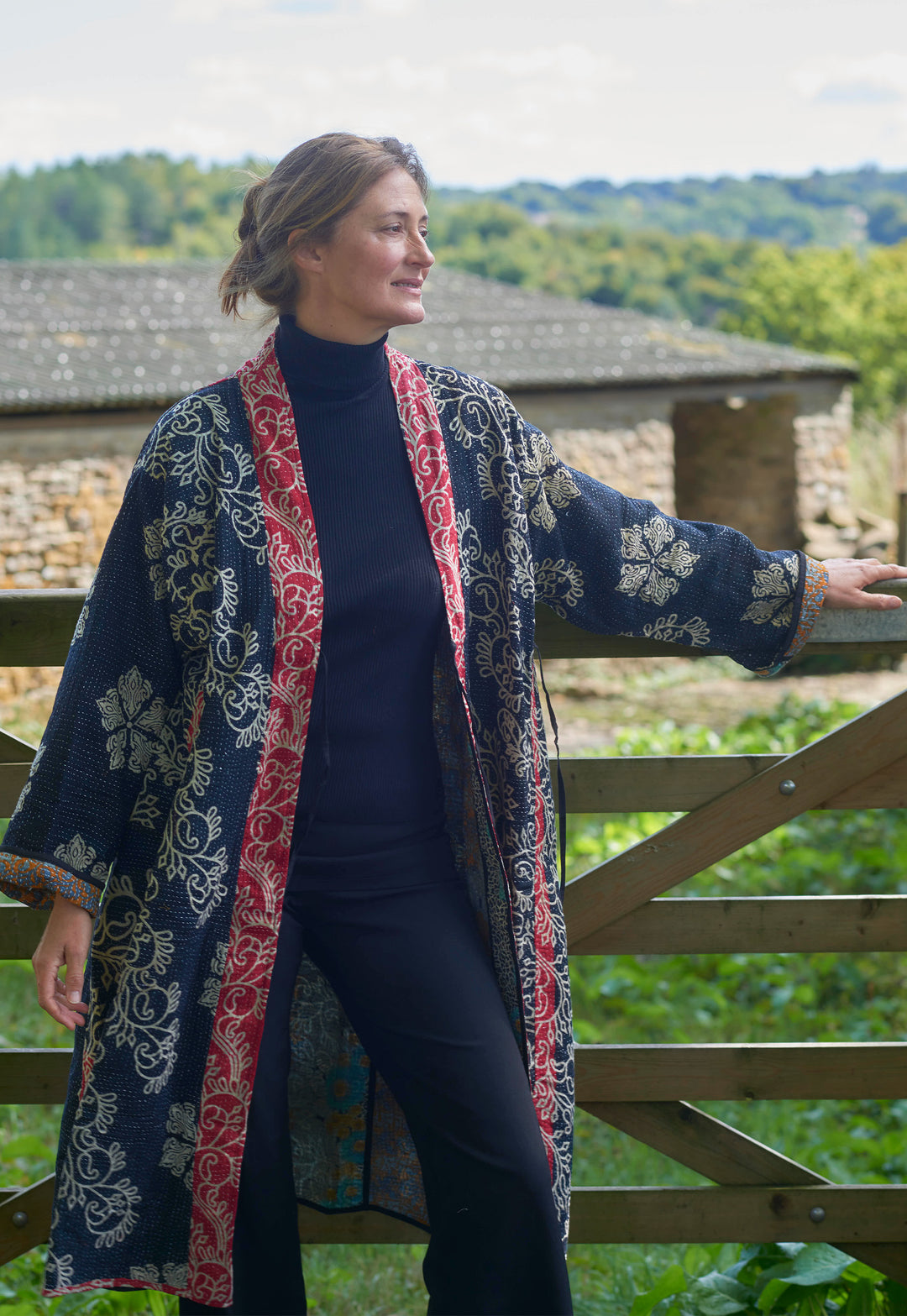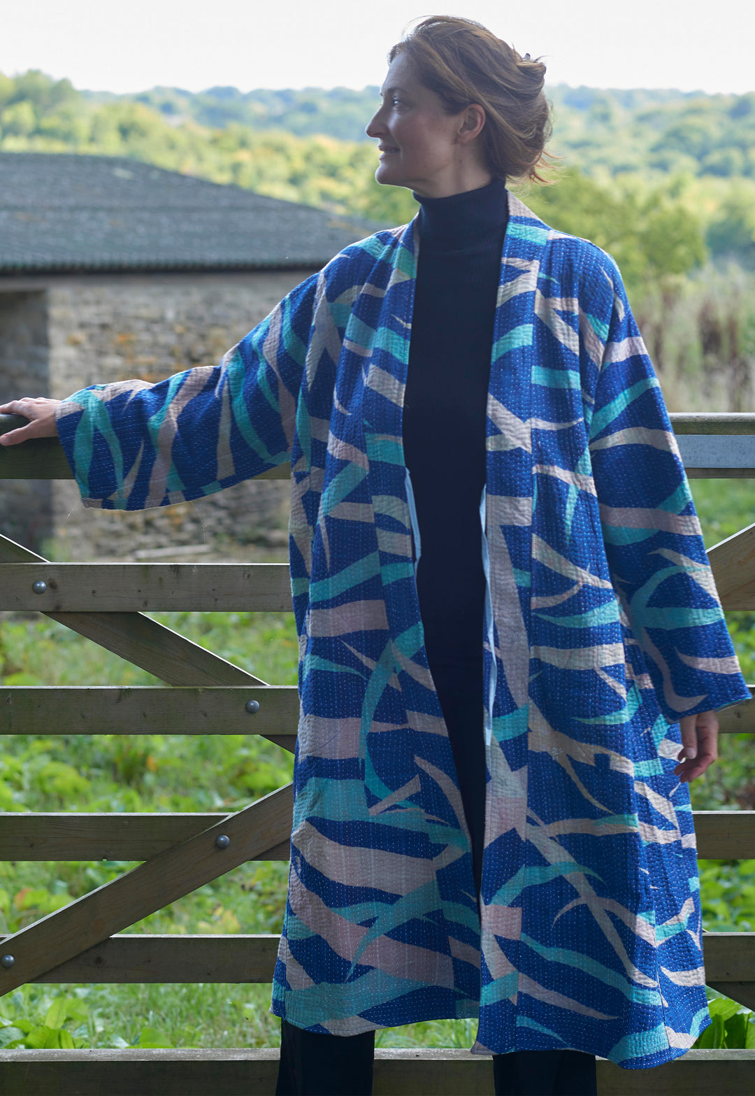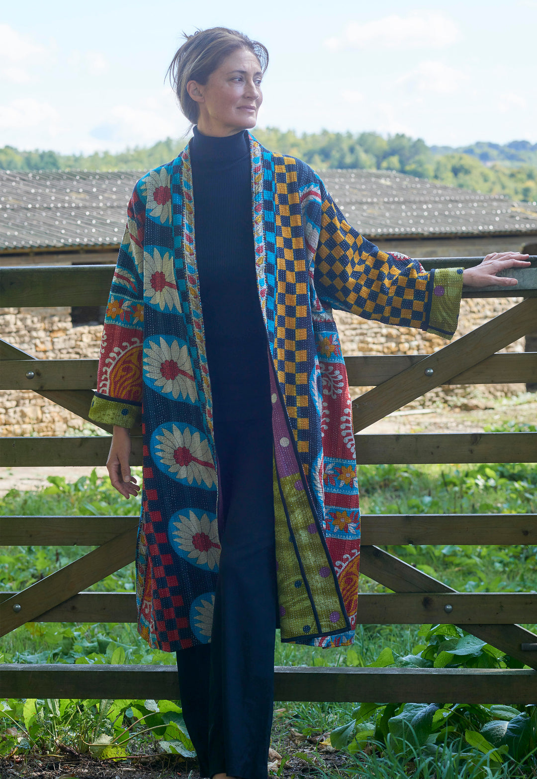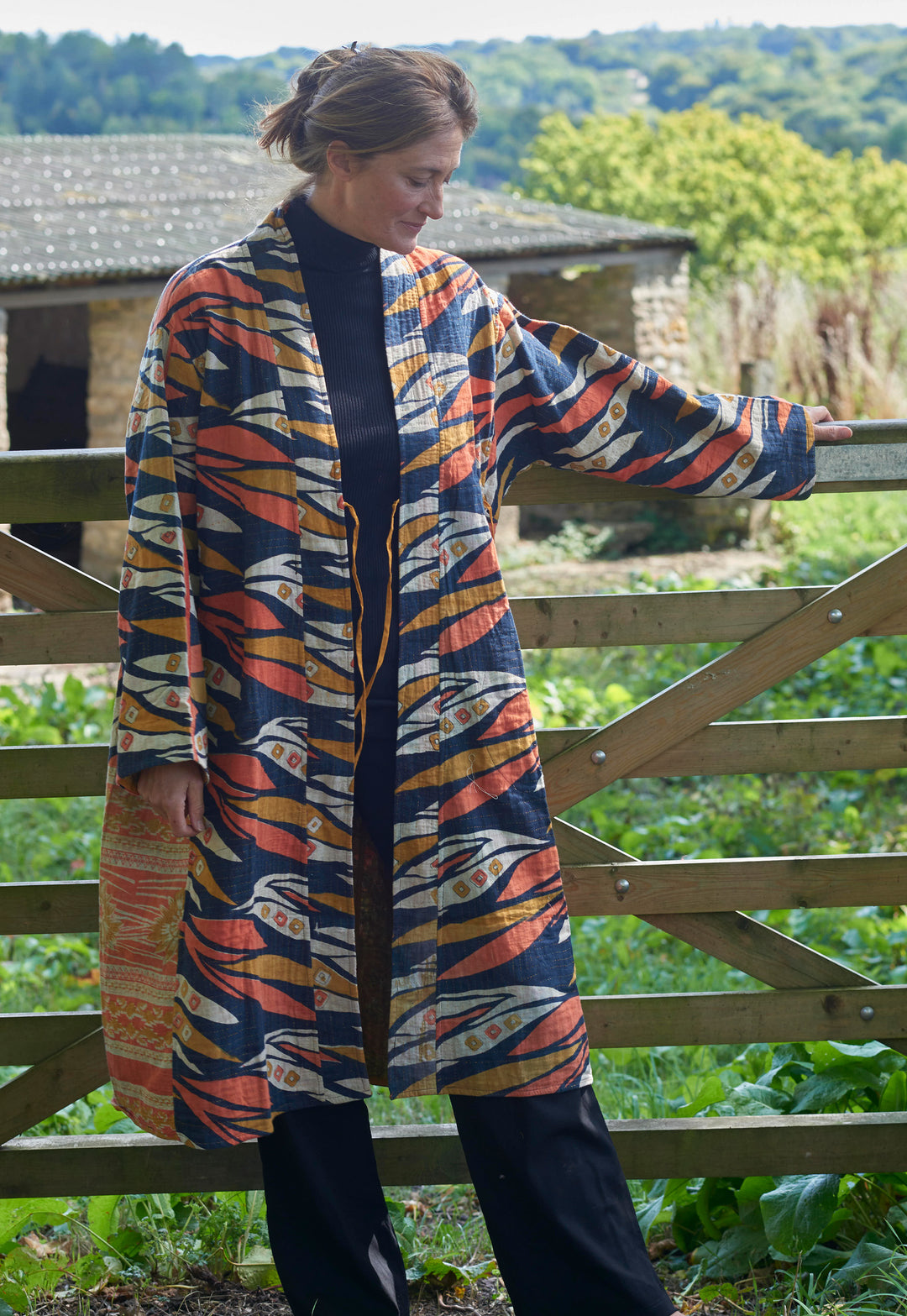 Our cotton Kantha jackets are unique pieces, each with its own story to tell. These jackets have been made from vintage cotton saris and are hand-stitched together using Kantha running stitch. We carefully choose the best of these pieces of fabric to translate into one of our versatile styles in wearable and original prints and colours.