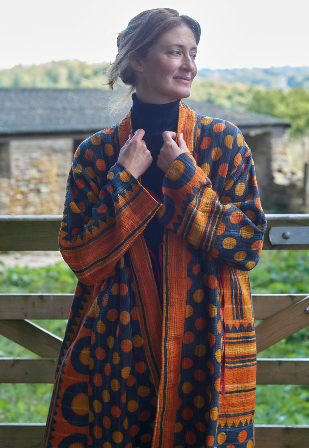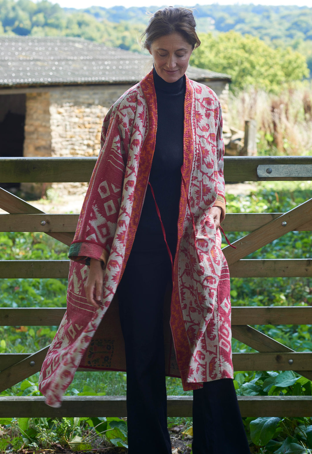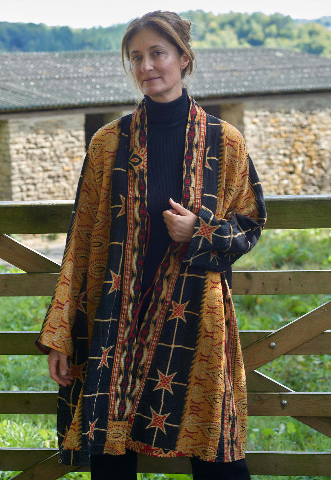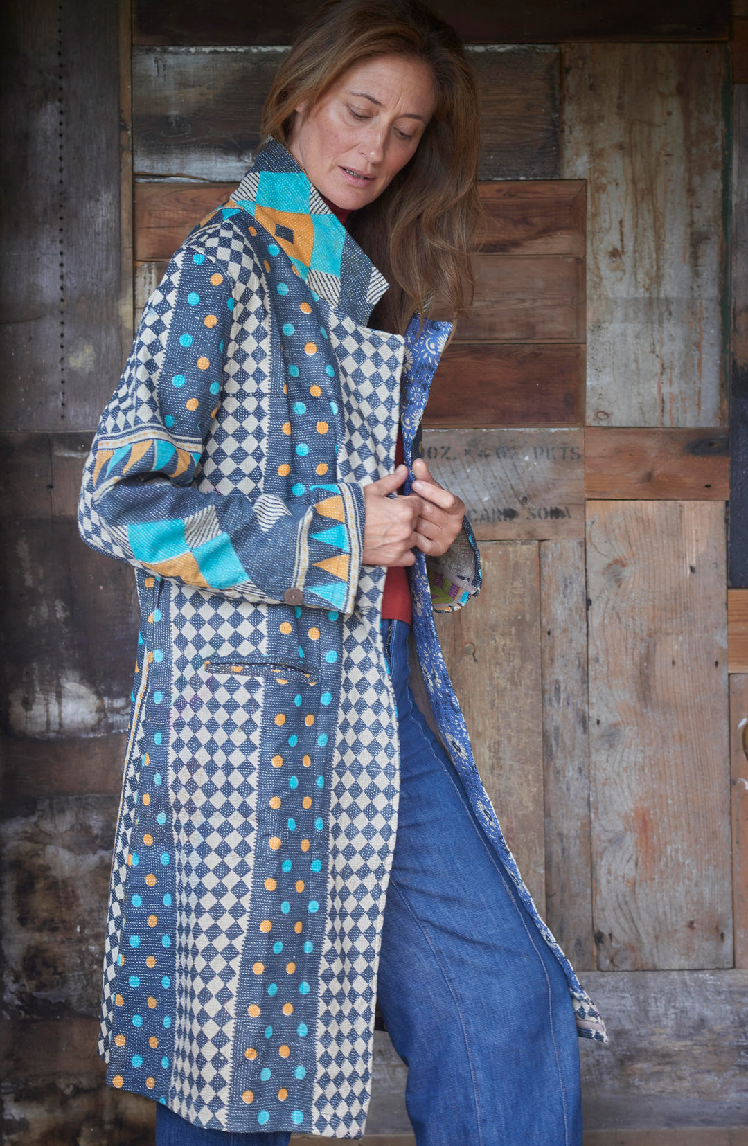 Our cotton Kantha jackets are unique pieces, each with its own story to tell. These jackets have been made from vintage cotton saris and are hand-stitched together using Kantha running stitch. We carefully choose the best of these pieces of fabric to translate into one of our versatile styles in wearable and original prints and colours.