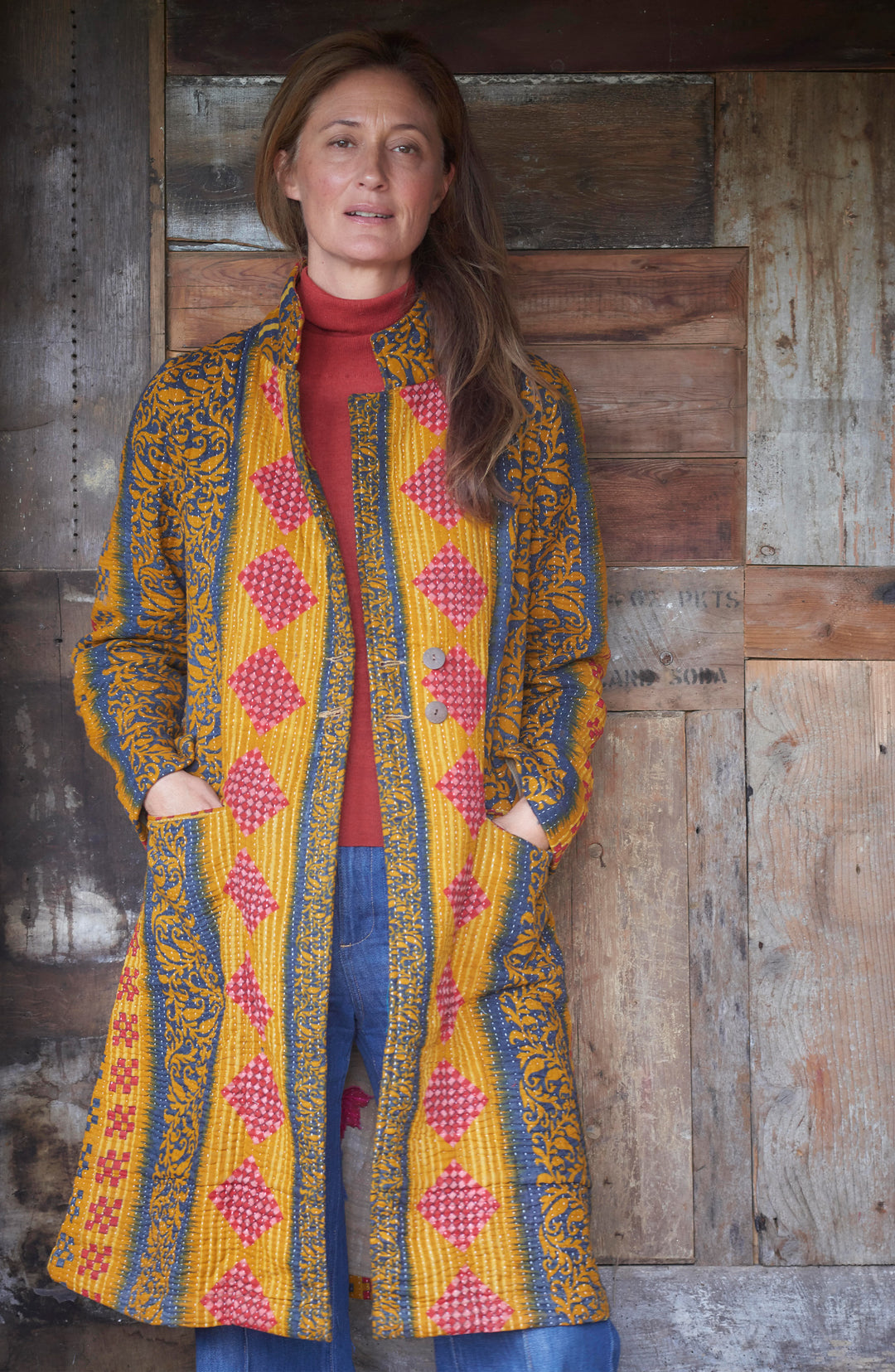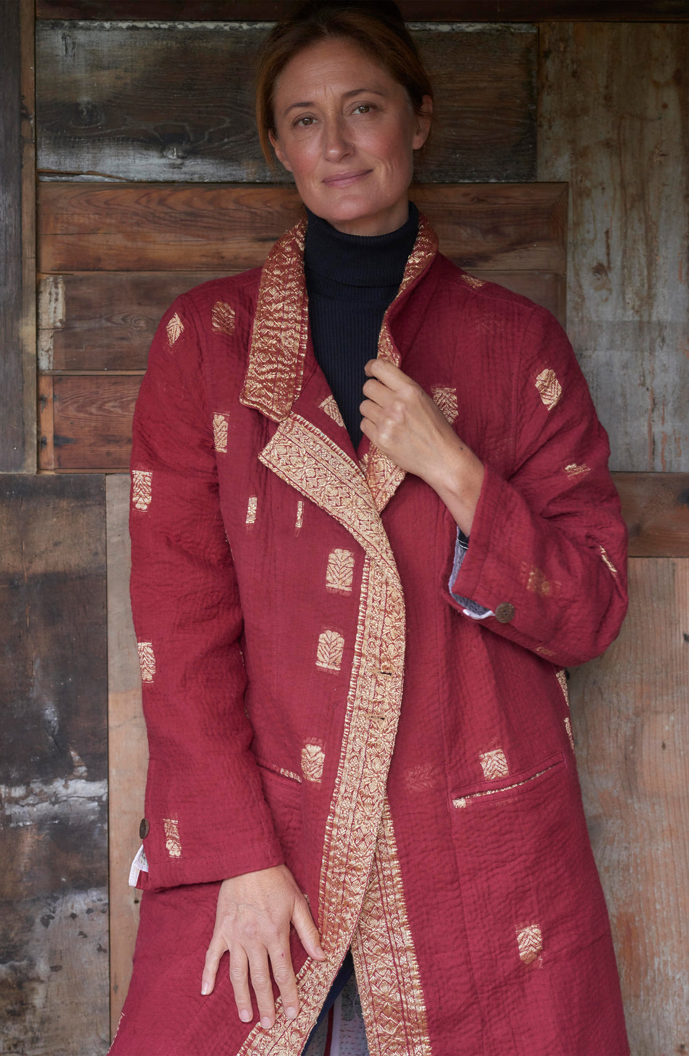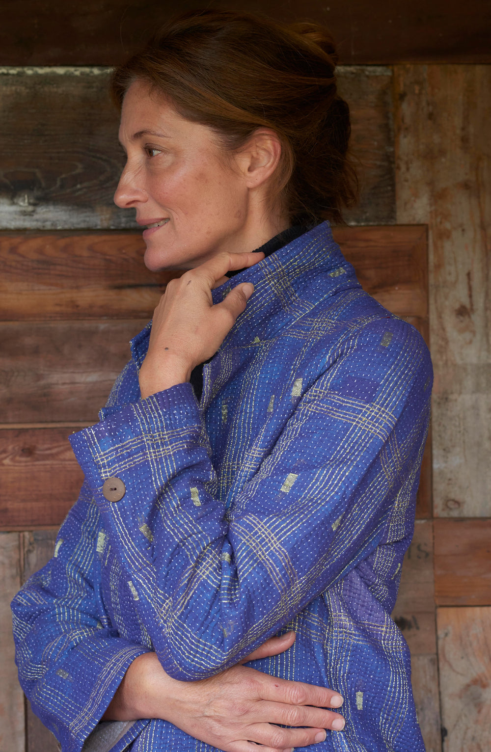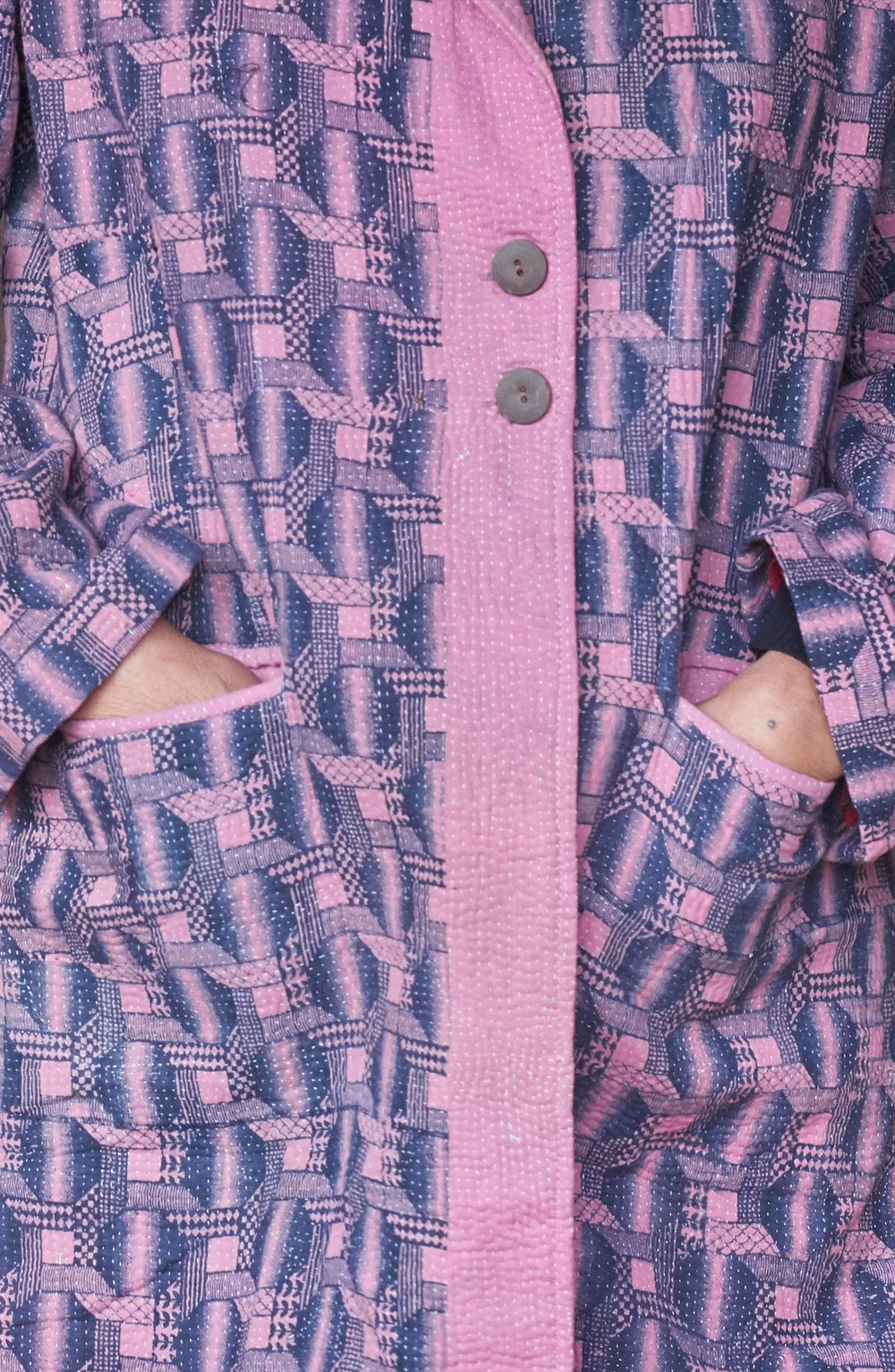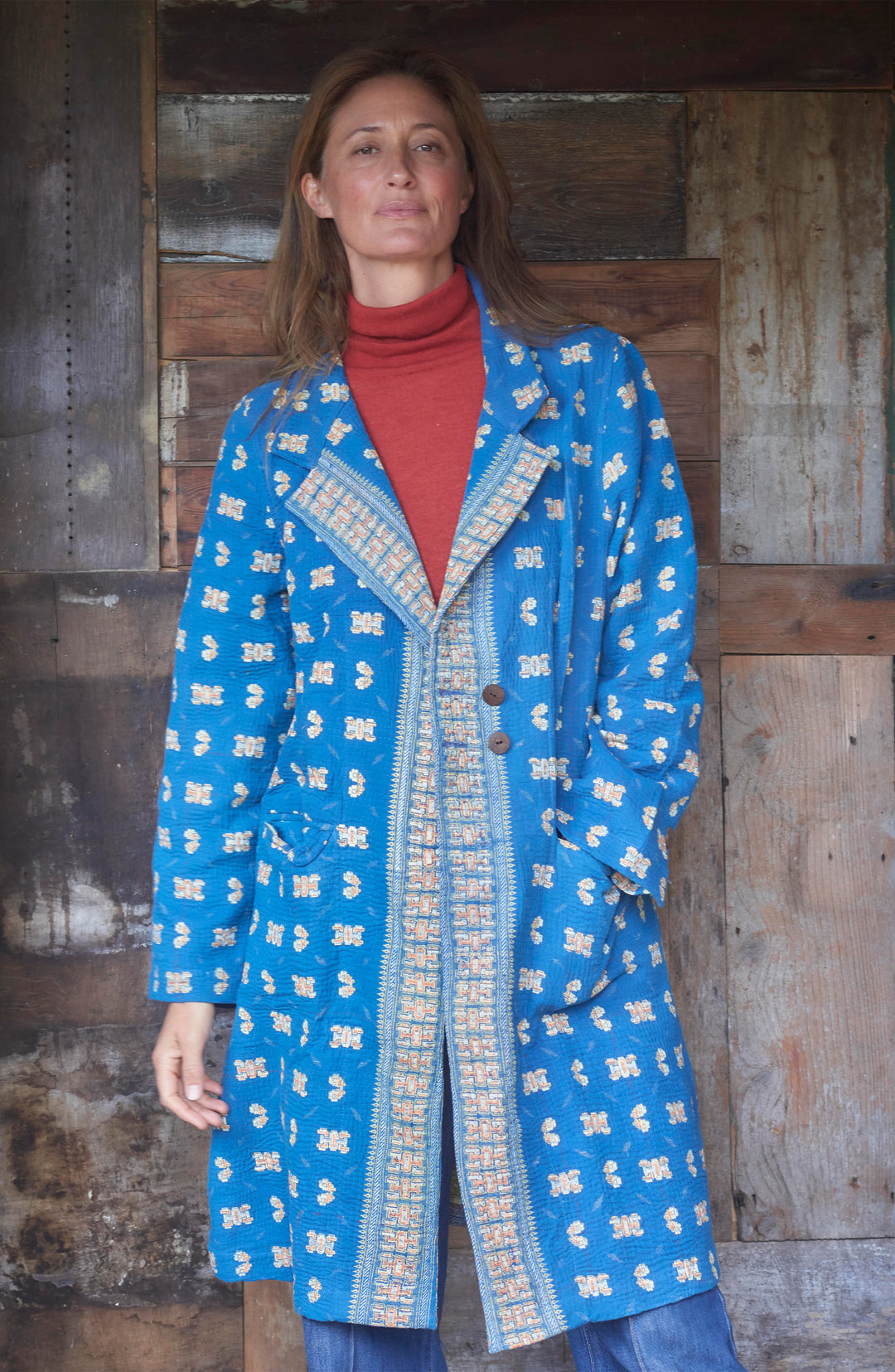 Our cotton Kantha jackets are unique pieces, each with its own story to tell. These jackets have been made from vintage cotton saris and are hand-stitched together using Kantha running stitch. We carefully choose the best of these pieces of fabric to translate into one of our versatile styles in wearable and original prints and colours.