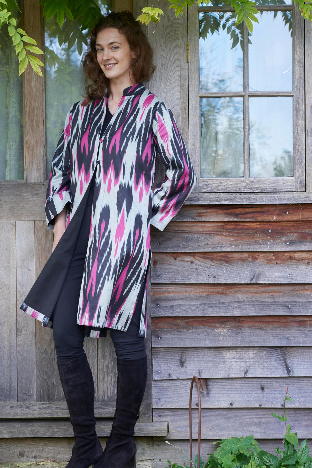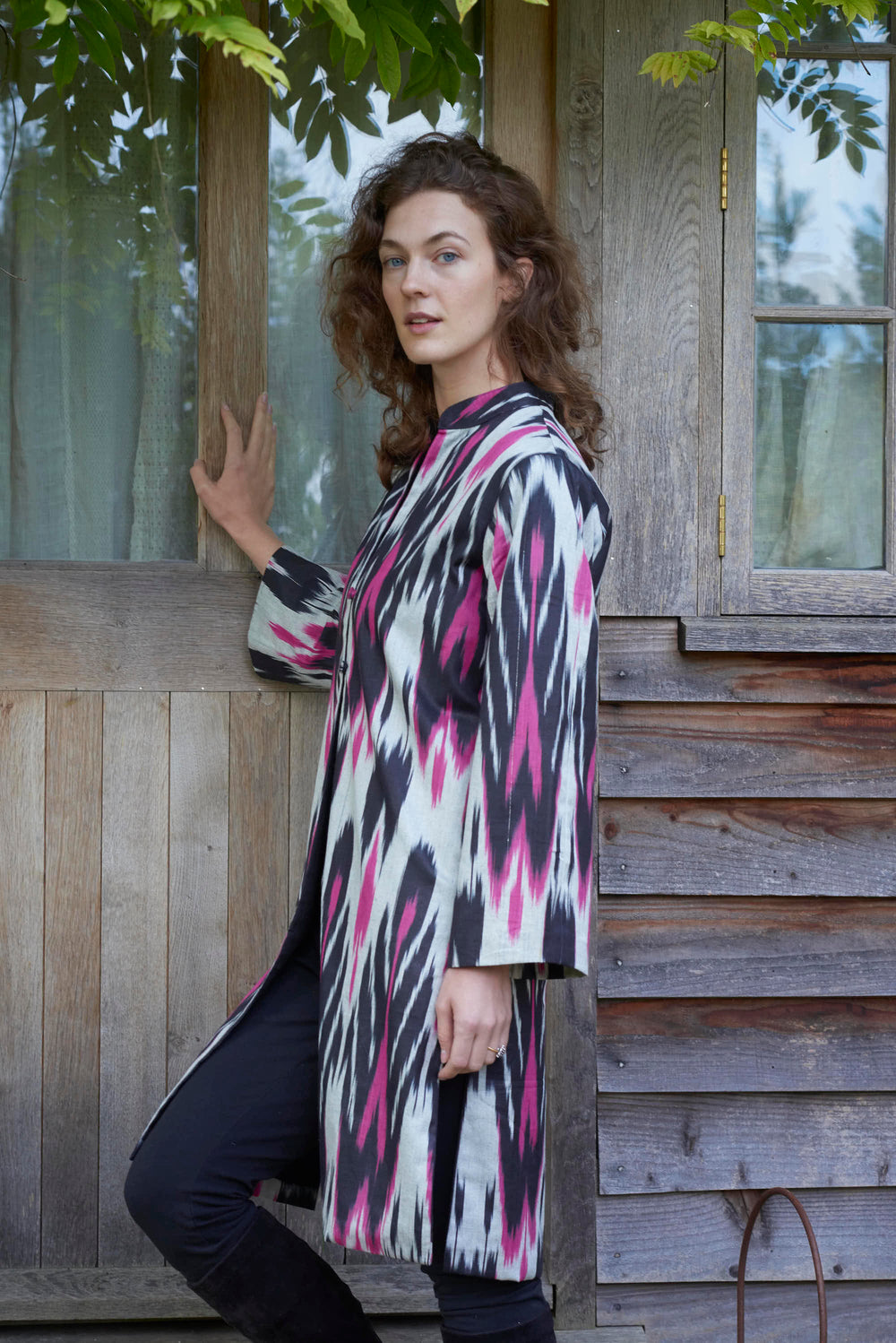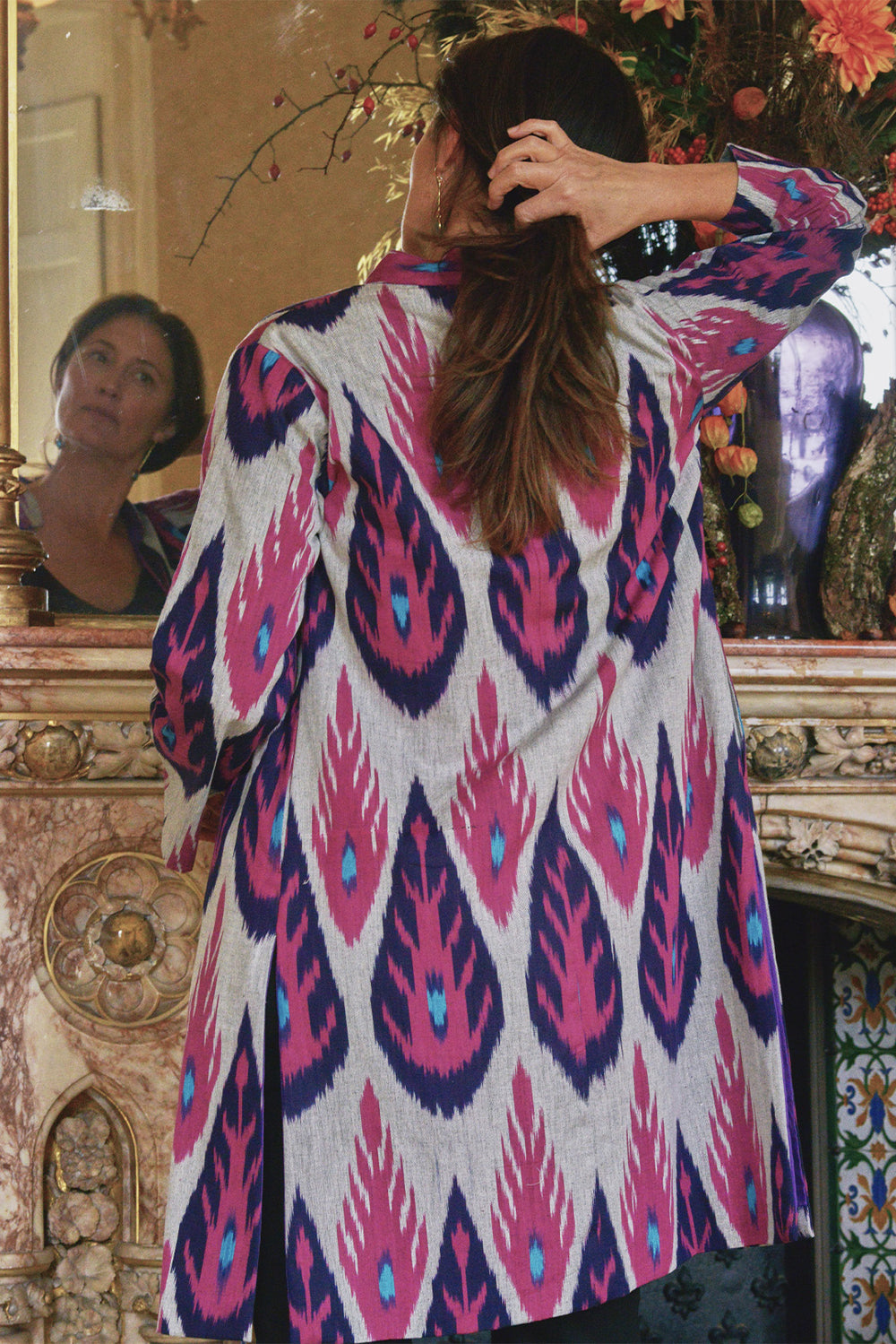 Made from soft silk organza, beautifully hand-block printed with a unique Mughal-inspired design Each jacket is one-of-a-kind, reflecting the delicate handwork of traditional wood block-printing.
