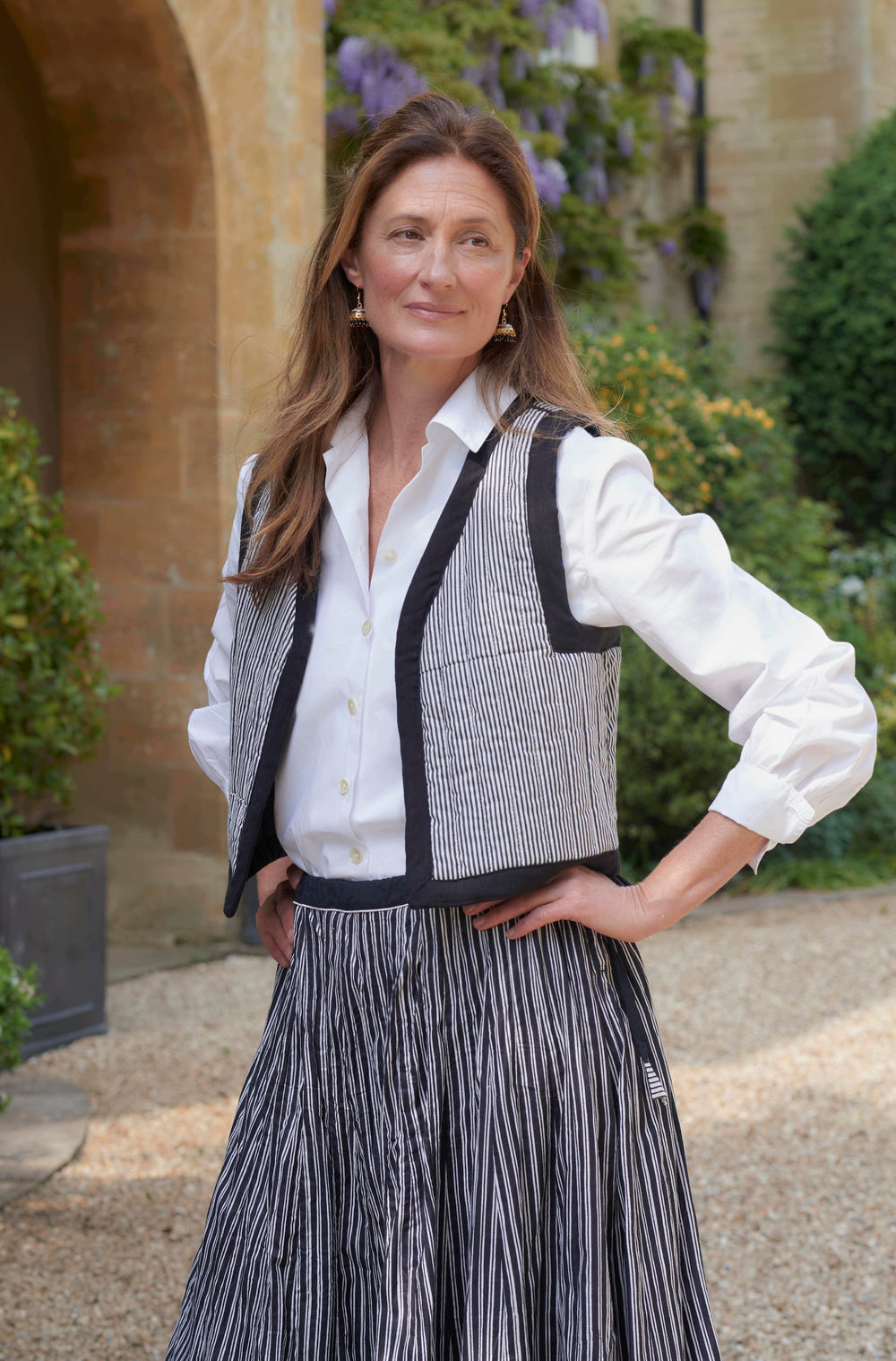 Elevate your look with the 'Bella' Reversible Quilted Waistcoat made from soft, quilted slub cotton with hand block printed cotton lining.