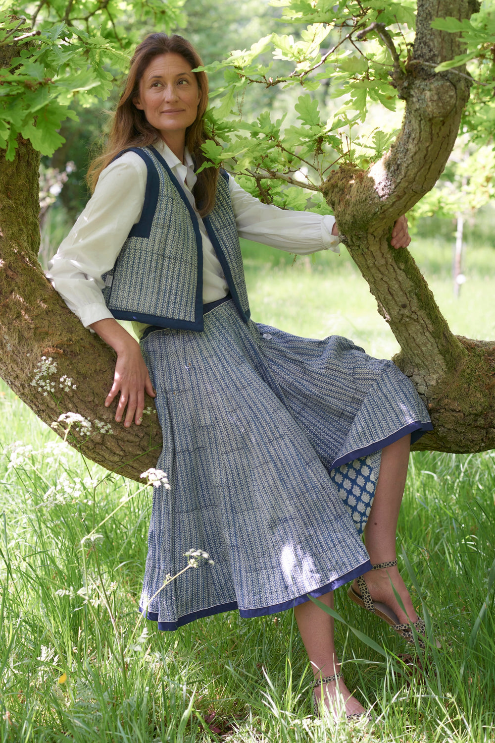 Elevate your look with the 'Bella' Reversible Quilted Waistcoat made from soft, quilted slub cotton with hand block printed cotton lining.